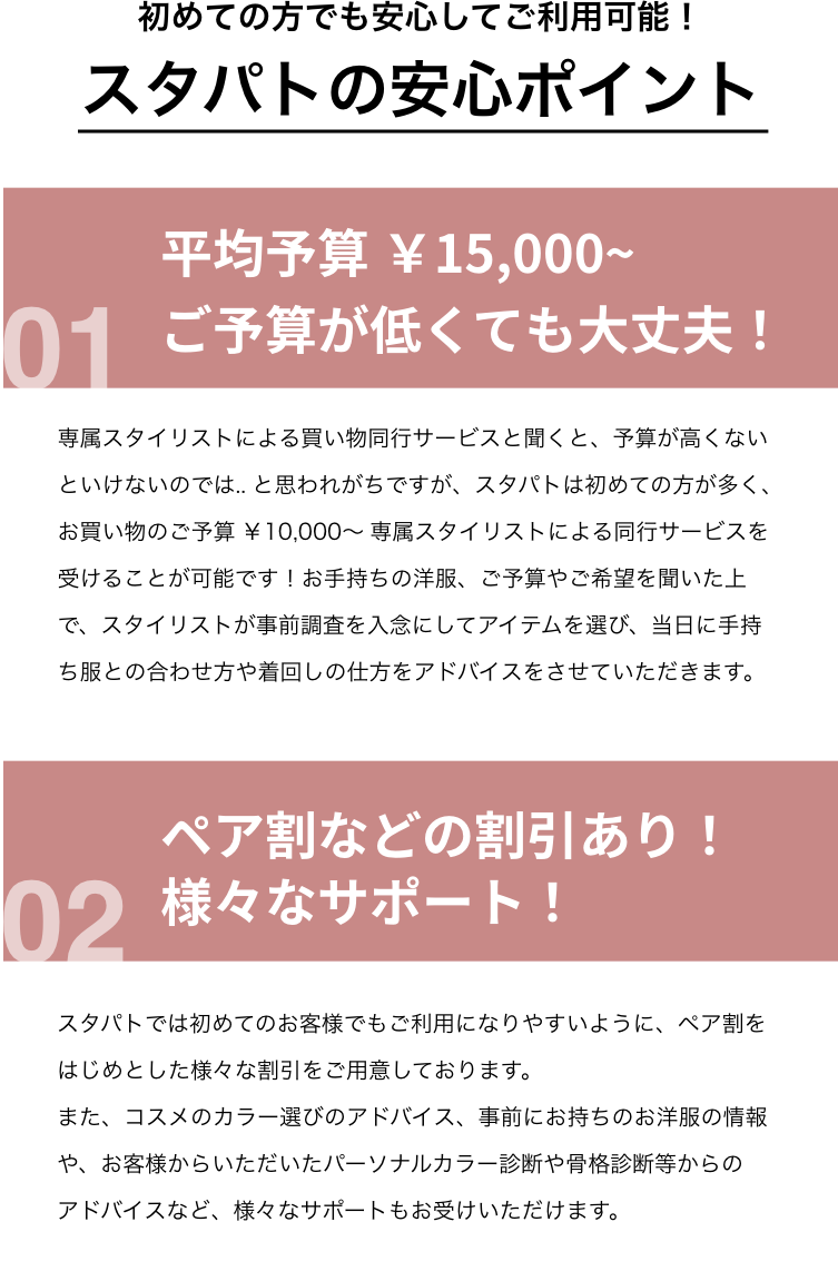 同行ショッピングのスタイリストのマッチングと事前調査があるため1週間前までのお申込みとなります。
